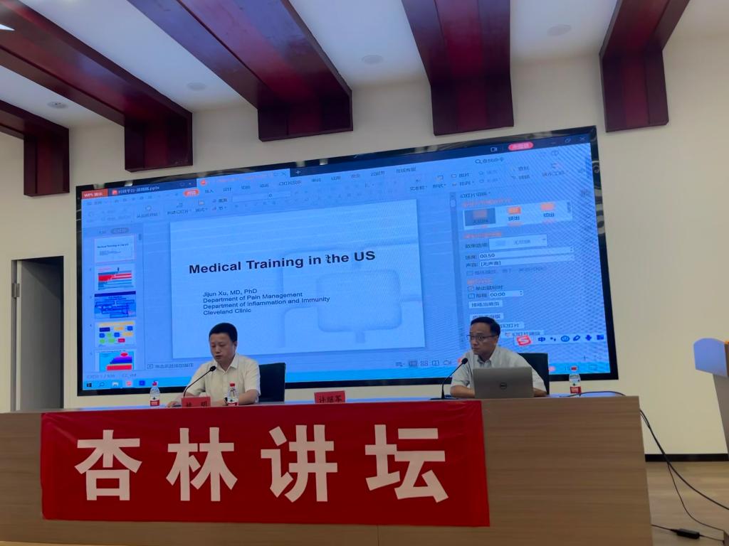 新一期“杏林讲坛”在仁心楼党员教育基地培训教室举行。美国德克萨斯大学神经科学博士、克利夫兰医学中心疼痛科临床医师许继军教授主讲,嘉兴学院附属医院院长姚明主持。九色视频