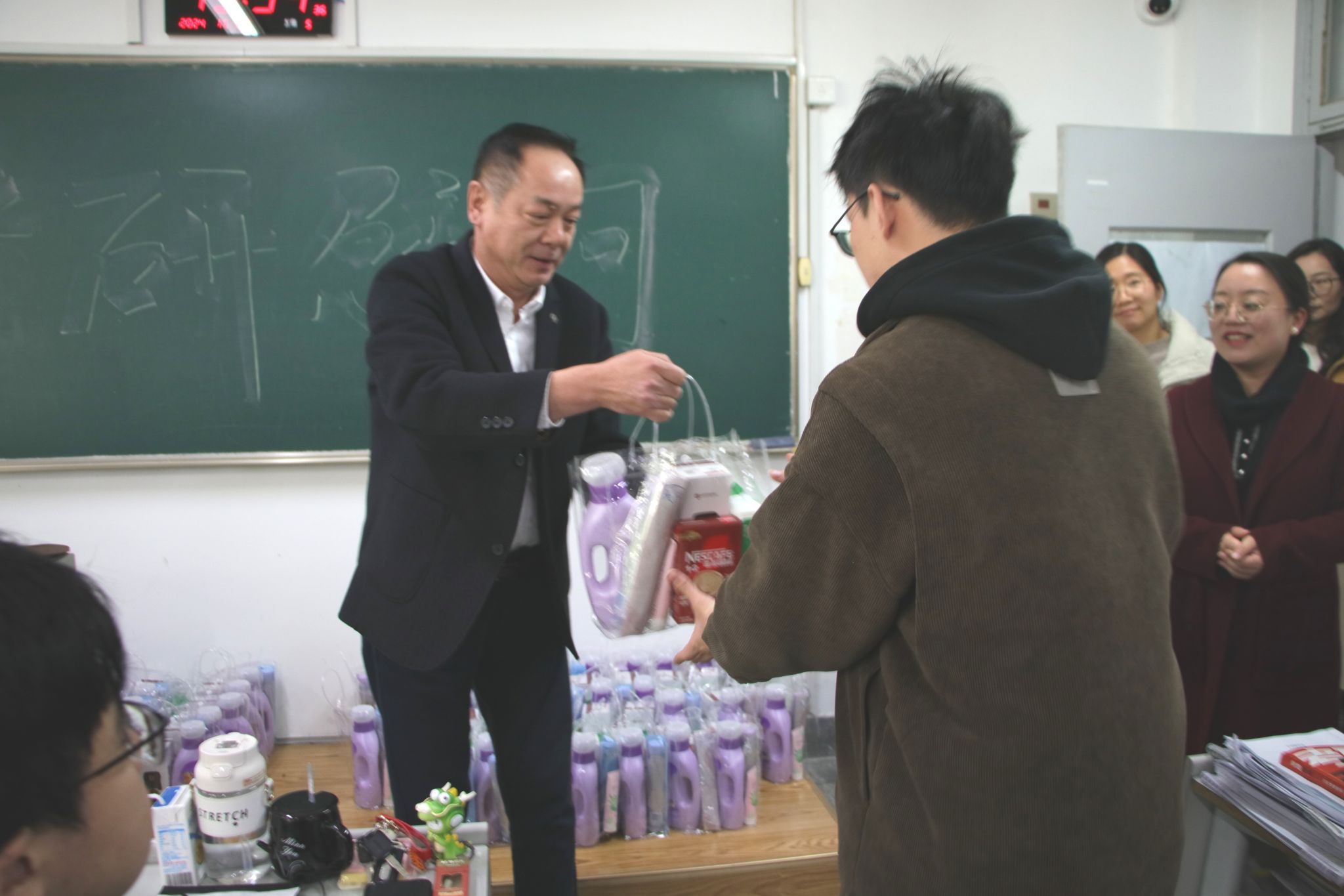 陈云飞代表学院为同学们送上考研祝福,勉励同学们坚定考研信心,针对同学们的备考情况进行深入交流,提供相应建议,引导学生积极备考,鼓励大家全力以赴,考出理想成绩,成功上岸。随后,辅导员们为每位考研学子送上“考研礼包”,表达对他们的关心与鼓励。