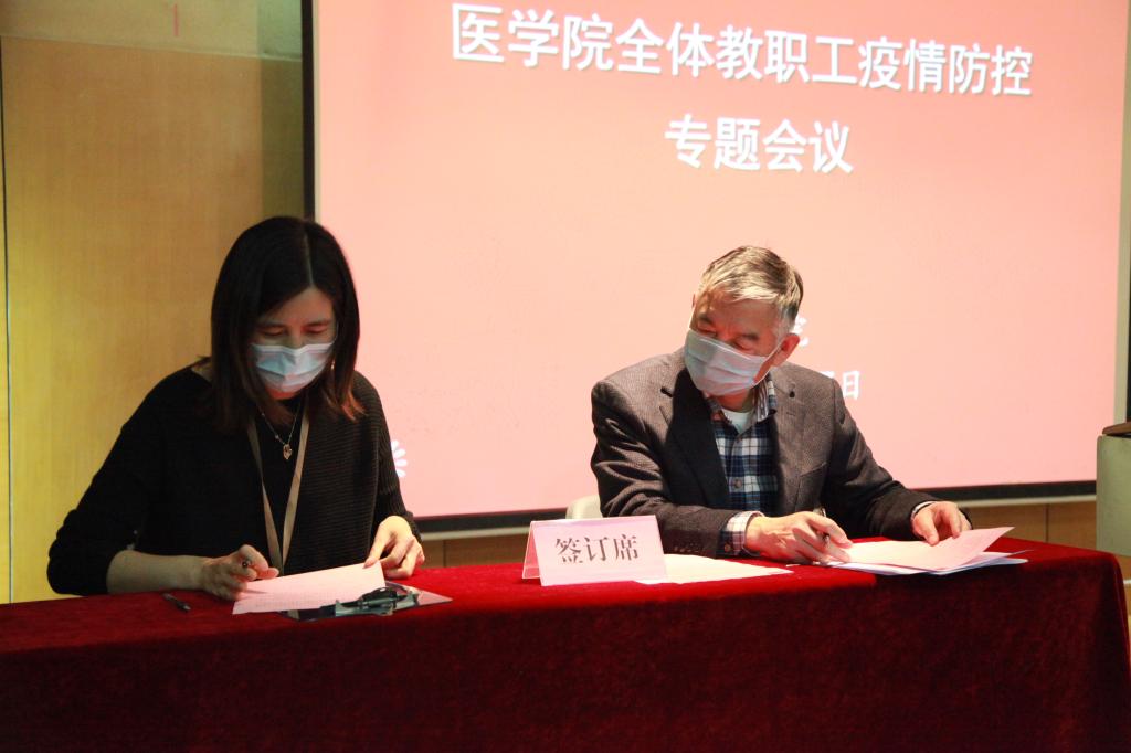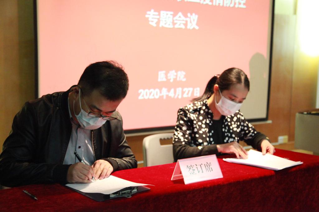 4月27日晚,九色视频 召开开学前疫情防控专题会议,全体教职员工参加会议。会议由学院常务副院长黄嬛主持。 会上,黄嬛宣读了“九色视频 疫情防控工作领导小组”“九色视频 疫情防控发热工作专班”成员名单。学院逐级签订了《新冠肺炎疫情防控常态化管理工作责任书》,将责任落实到系部、班主任和全体普通教师,层层压实。 院党委书记惠太望作总结讲话。他指出,4月28日起,学生将陆续返回校园,学院要高度重视开学返校前后新冠肺炎疫情防控工作,健全责任体系,打好疫情防控和教育教学两大硬仗。他提出六点工作要求。一要加强组织领导,全面摸排,如实报告;二要加强知识学习,改变传统习惯,建立健康生活方式;三要加强师生管理,严格请销假制度;四要关心关爱学生,彰显人文关怀;五要及时有序落实防控措施,按流程处理发热学生;六要做好管理服务,筑牢安全屏障。