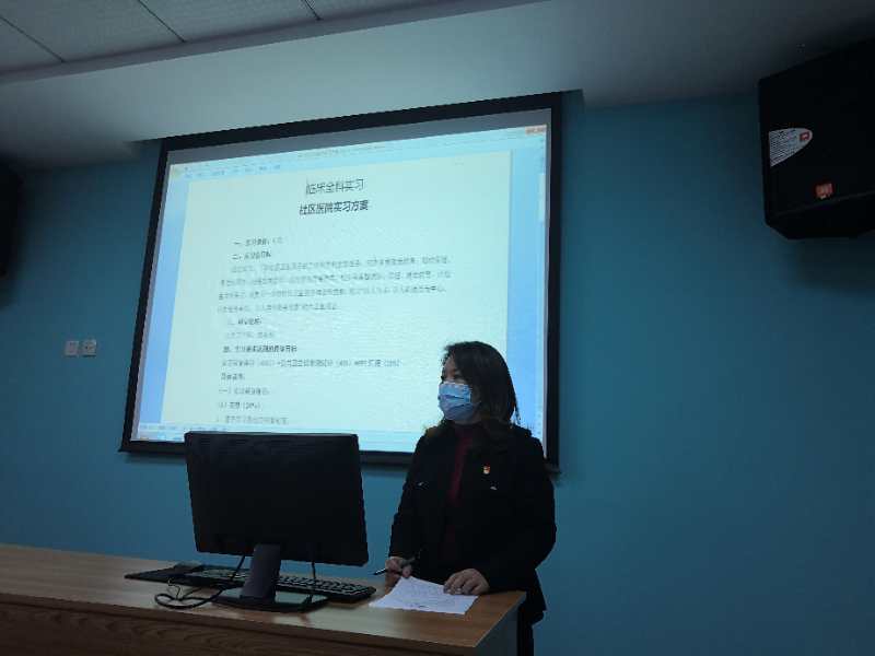 作为学校唯一一家附属实践教学基地,附属城南街道社区卫生服务中心办公室主任沈淑芳介绍了社区(全科)实习的规范及要求,主要涵盖社区实习目标、实习内容、实习轮转、实习考核及注意事项等内容。