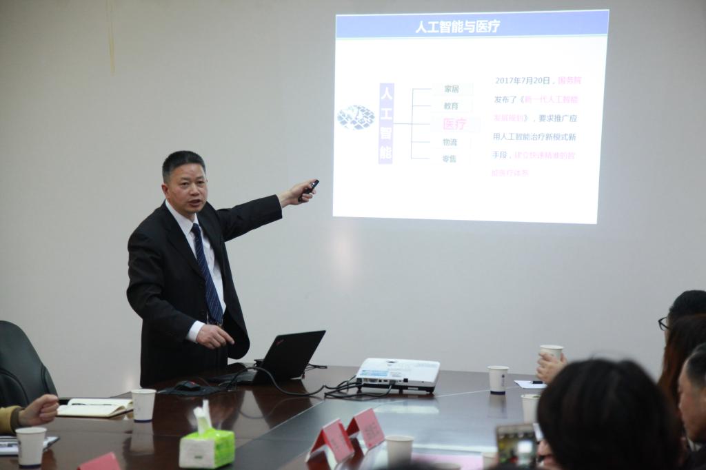 学术沙龙活动由胡俊云副校长主持,胡校长代表嘉兴学院对程树群教授出席本次活动表示热烈欢迎,希望通过首次“医工创新”学术沙龙活动推动嘉兴学院学科之间交流合作,程教授以医工创新研究中心为主线讲述了医工结合的必要性和可行性,结合人工智能与医疗讲述了研究中心的建设思路与目标。报告向在场老师展示了程教授的最新研究内容以及未来医工创新研究中心的研究目标。