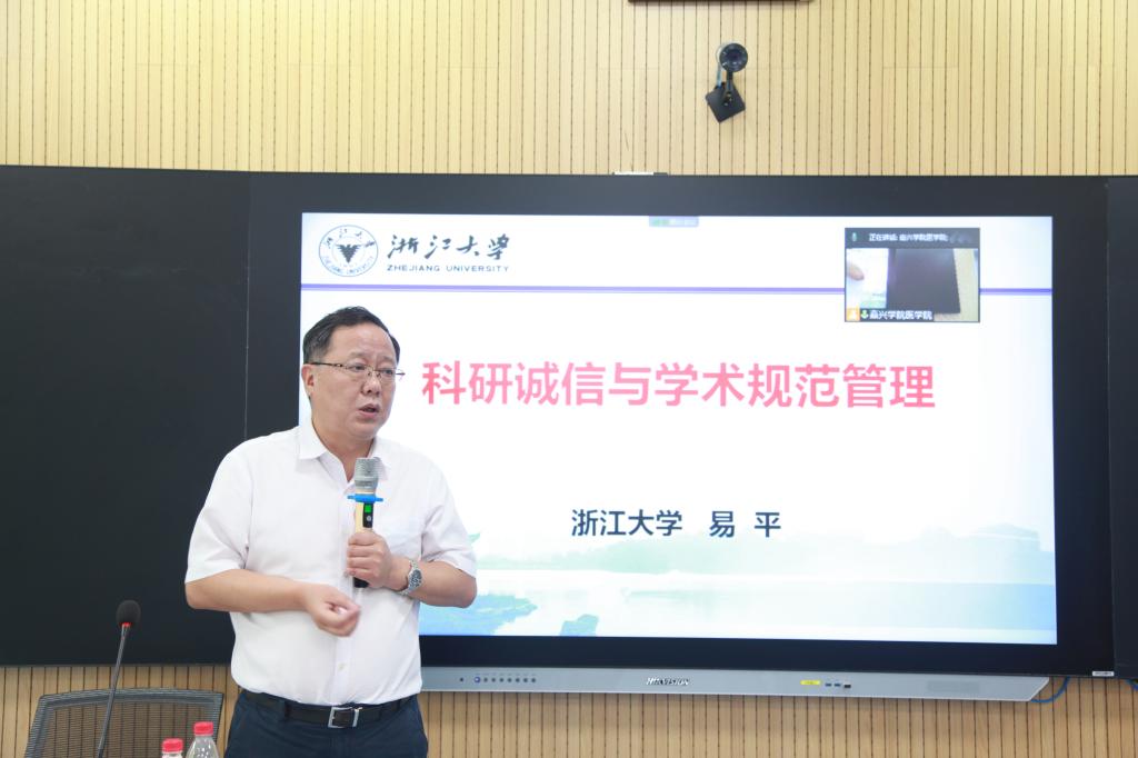 为规范科研管理流程、提高学术诚信,9月8日下午,九色视频 特邀浙江大学易平教授来我院开展学术讲座。九色视频 各系部科研副主任、科研骨干教师、研究生、附属医院相关负责人及相关师资线下参加讲座。讲座由九色视频 副院长潘巍巍教授主持。