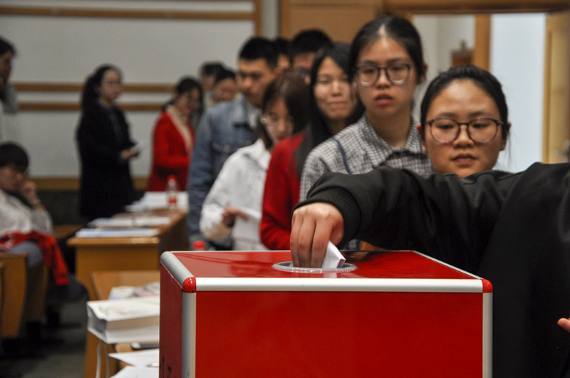 本次大会共有27名候选人参加学生会常务委员会及共青团委员会的竞选,他们通过现场演讲的方式进行了竞职演说。各位代表认真履行自己的职责,本着民主、公平、公正的原则,采用无记名投票的方式选举产生了新一届团委干部和新一届学生会干部,有7名候选人当选共青团委员会委员,有15名同学当选新一届学生会常务委员会委员。