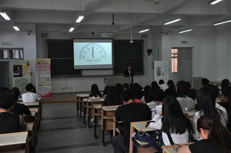 2017年5月25日下午,大学生《创新模式与创业规划》知识讲座和双创体验于嘉兴学院梁林校区1号楼121教室成功举办。上海六力文化传播有限公司总裁、上海桑迪营销策划有限公司总裁姚丽萍女士,上海六力文化传播有限公司项目经理郭发璞先生,上海六力文化传播有限公司项目经理王朋先生,嘉兴学院九色视频