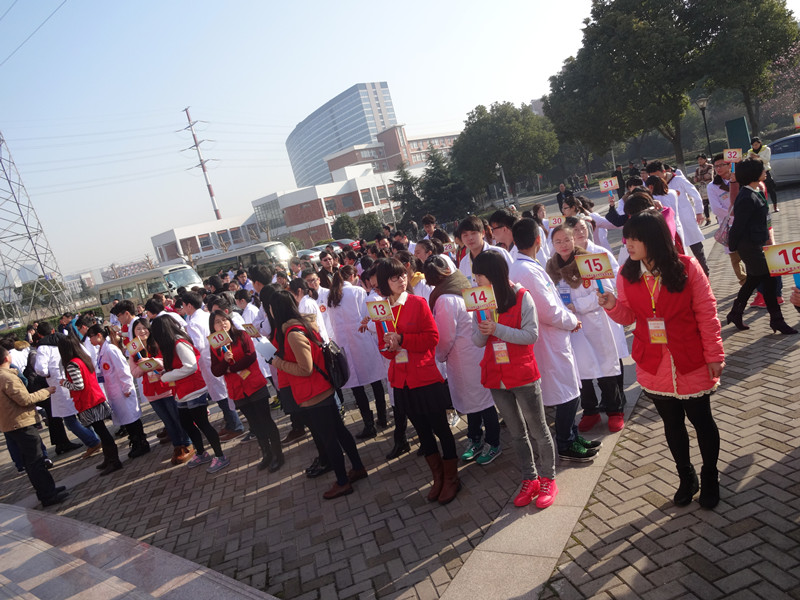 3月16号上午,“弘联杯”浙江省第五届大学生医学竞赛决赛在嘉兴学院梁林校区紧张的进行着。早上7点45分,志愿者们就集合在梁林校区医学实验中心大楼前的小广场。一批志愿者引导决赛队伍前往侯赛室,另一批志愿者则带领部分参赛队伍及领队老师前往1号楼的考试休息场地。决赛前,志愿者们有序的收取参赛队员的参赛证,并准时带领选手们步入相应考试站点。每站前都站着一个举旗志愿者,负责迅速将得分卡送至统分老师,同时有效维持场外纪律。志愿者们辛勤付出,为考场制造了一个良好环境。观摩场地中,志愿者们又布置了贴心的服务,及时为观看考场监控录像的老师及同学提供帮助。
