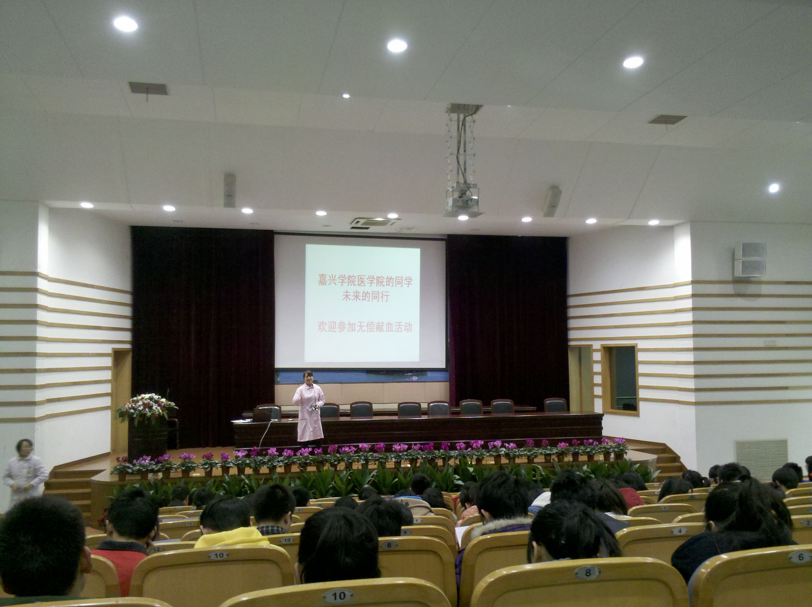 在梁林校区TCL报告厅组织了无偿献血活动,并邀请嘉兴市中心血站专业人员到我院进行无偿献血宣讲,对同学们关于献血前后注意事项等问题进行了科学而细心的解答。参加此次献血活动的主要是2012级新生,还有嘉兴市无偿献血模范,学生们听完宣讲后踊跃报名,最终共有34名同学成功参加此次无偿献血活动,给予全院通报表扬。名单如下: