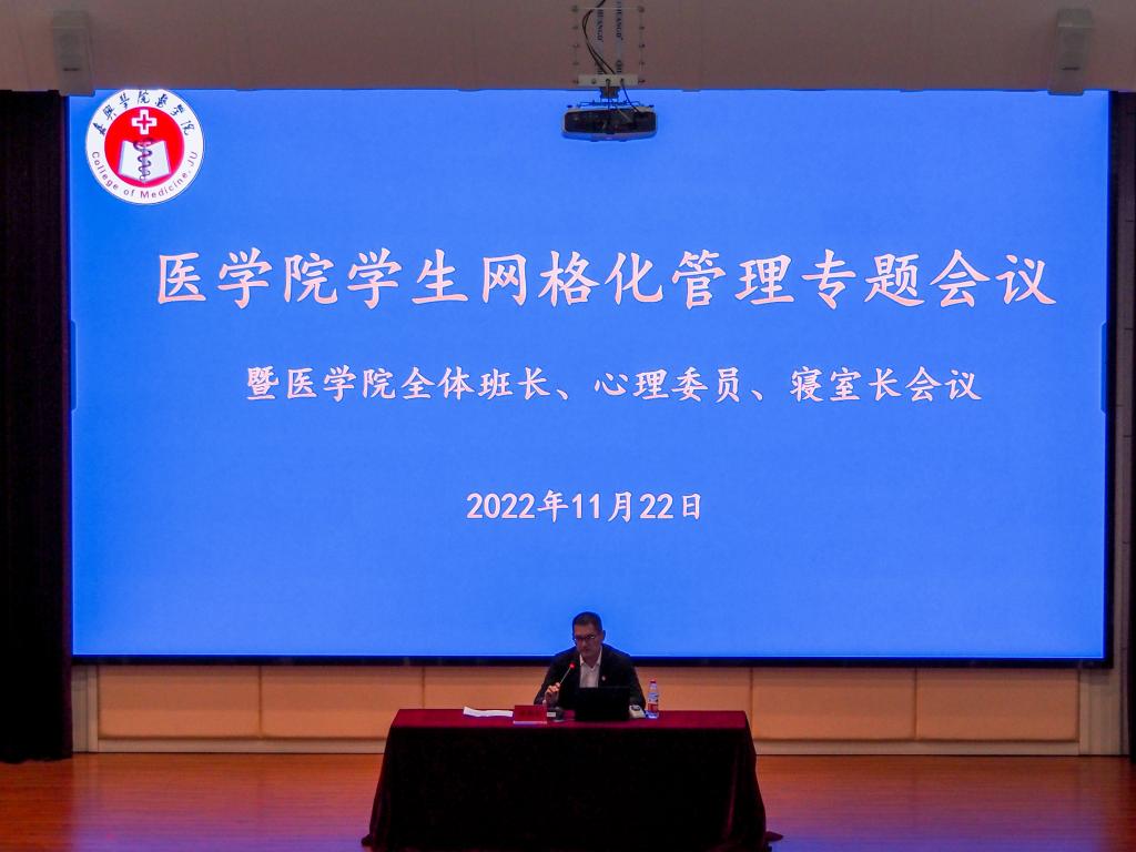 学生网格化管理专题会议于11月22日中午在TCL报告厅举行,学院党委副书记李联钊主持会议并讲话,学院全体辅导员、全体班长、心理委员、寝室长参加会议。