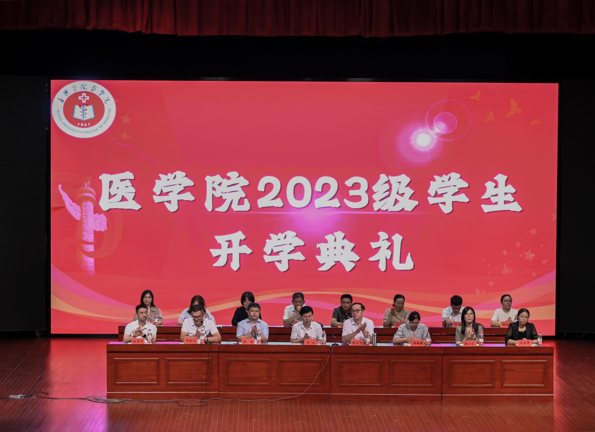 何治院长致辞,何院长对新生提出三点希望:一是希望广大新生牢记初心使命,永葆仁心情怀。在求医道路上坚守初心、矢志不渝,修炼美好心灵,涵养人间大爱。二是希望广大新生练就高超本领,勇攀医学高峰。在终身学习、创新学习中积累人生智慧,抢占学术之高地、敢发学术之先声、勇攀医学之高峰。三是希望广大新生厚植家国情怀,守护人民健康。锚定目标、砥砺奋进,努力成为具有“救死扶伤的医术、心存大爱的仁术、知识扎实的学术、方法高超的技术”的医学专业人才。