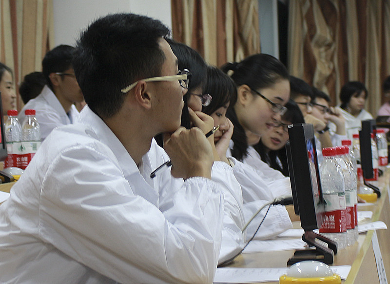 本次竞赛共有12组参赛队伍,三轮比赛环节。选手们身着白大褂,严阵以待,做好充分的准备。第一轮为个人必答环节,选手们屏息凝神,认真答题。第二轮为小组共答环节,在组员的共同努力之下,各组回答表现十分优异。第三轮为抢答环节,跟着主持人的倒计时,选手们争先恐后地按下抢答器,都为了荣誉而拼搏着。