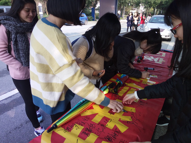 由于江浙地带的天气总是变幻莫测,且嘉兴处于江、海、湖、河交汇之处,当天的天气变幻总是让人难以预测,雨天也是尤其常见。为减少给全校师生带来的不便,我院特为全体师生提供了“爱心伞”,旨在让一把小小的伞满载爱心传递在学校的每个角落,温暖你我他。
