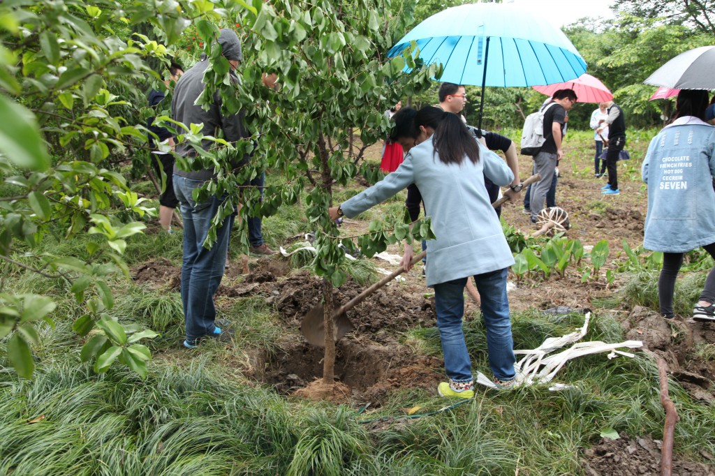 杏林园举行了“我为母校种杏树”植树活动。淅淅沥沥雨水,阻挡不了学子们和校友们爱校的热情。