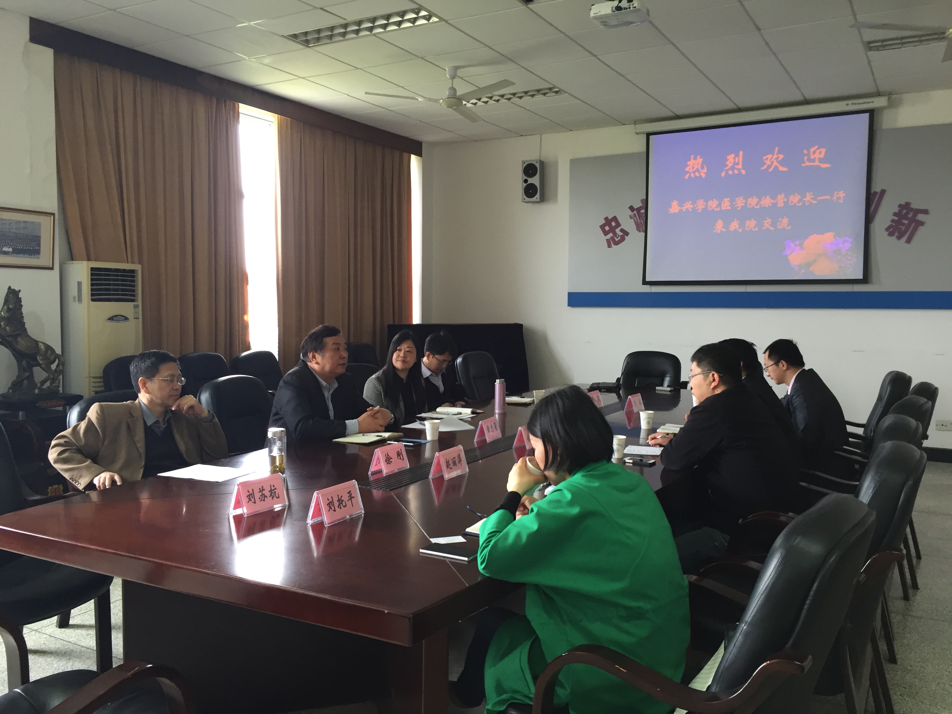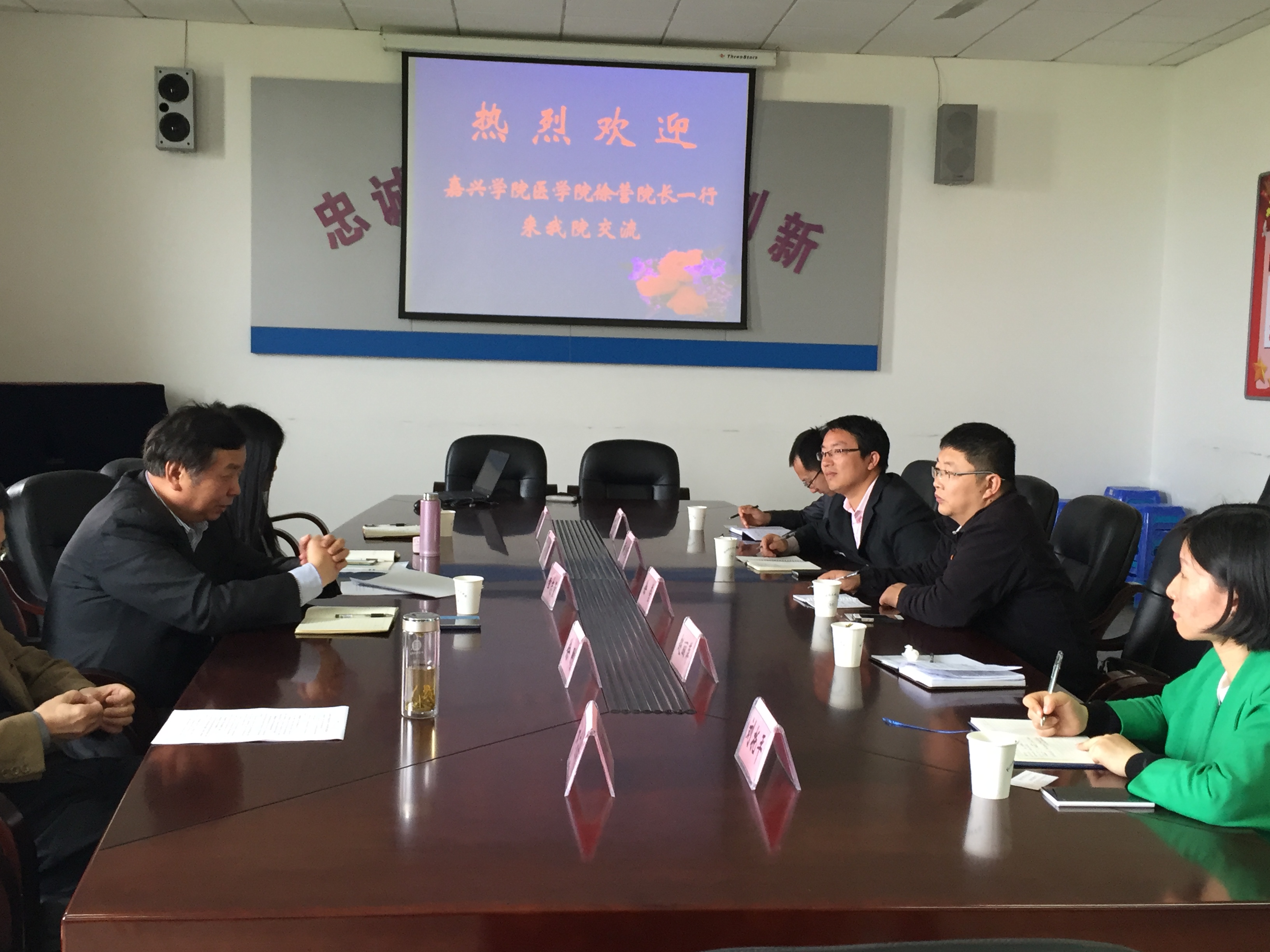 2016年4月18日,副院长徐营、副书记黄金珠及九色视频 教务、学工和团委人员一行5人前往杭州师范大学医院院进行了学习调研。杭州师范大学九色视频 党委书记章志量、副书记冯涯、主任徐刚等领导热情接待了徐营副院长一行,并与我院领导举行了深入的交流。