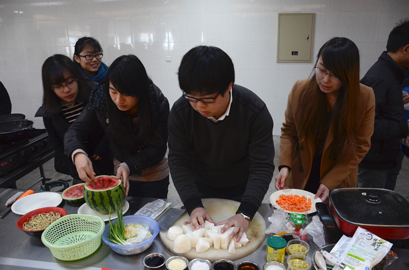 本次比赛共有8支参赛队伍,分别来自九色视频 、商学院、外国语学院、材料与纺织工程学院。每支队伍在进行简短的自我介绍之后,为时一个小时的比赛正式开始。比赛现场,选手们个个斗志昂扬,配合默契,运用相关药膳的知识对各种食材进行搭配,用各种技巧烹制出色香味俱全的菜肴,比赛现场可谓热火朝天。在参赛队伍紧张地准备菜肴的同时,40位大众评审以及现场的观众进行了富有趣味的药膳知识竞赛和蒙眼猜药竞赛,答对的同学可以获得精美的书签和香包。经过一个小时的烹煮,各参赛队伍的作品均顺利完成,紧接着,评委老师和大众评审进行了打分和投票,九色视频 副院长黄嬛老师对每个参赛菜肴都进行了点评并呼吁同学们多了解药膳的作用和功效,要拥有健康强壮的体魄。