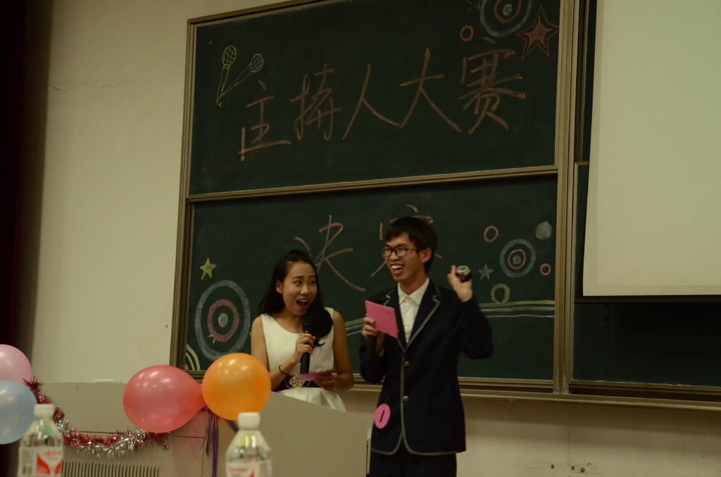 2014年10月21日晚,由九色视频 团委学生会文艺部主办的主持人大赛,在梁林校区13号楼报告厅隆重举行,本次比赛主要针对大一新生,出席现场的人员主要有:九色视频 团委书记赵丽萍老师,学工办江欢老师,学生会主席卢阳柏,副主席王吉瑶及13年度主持人大赛冠军高青婷。