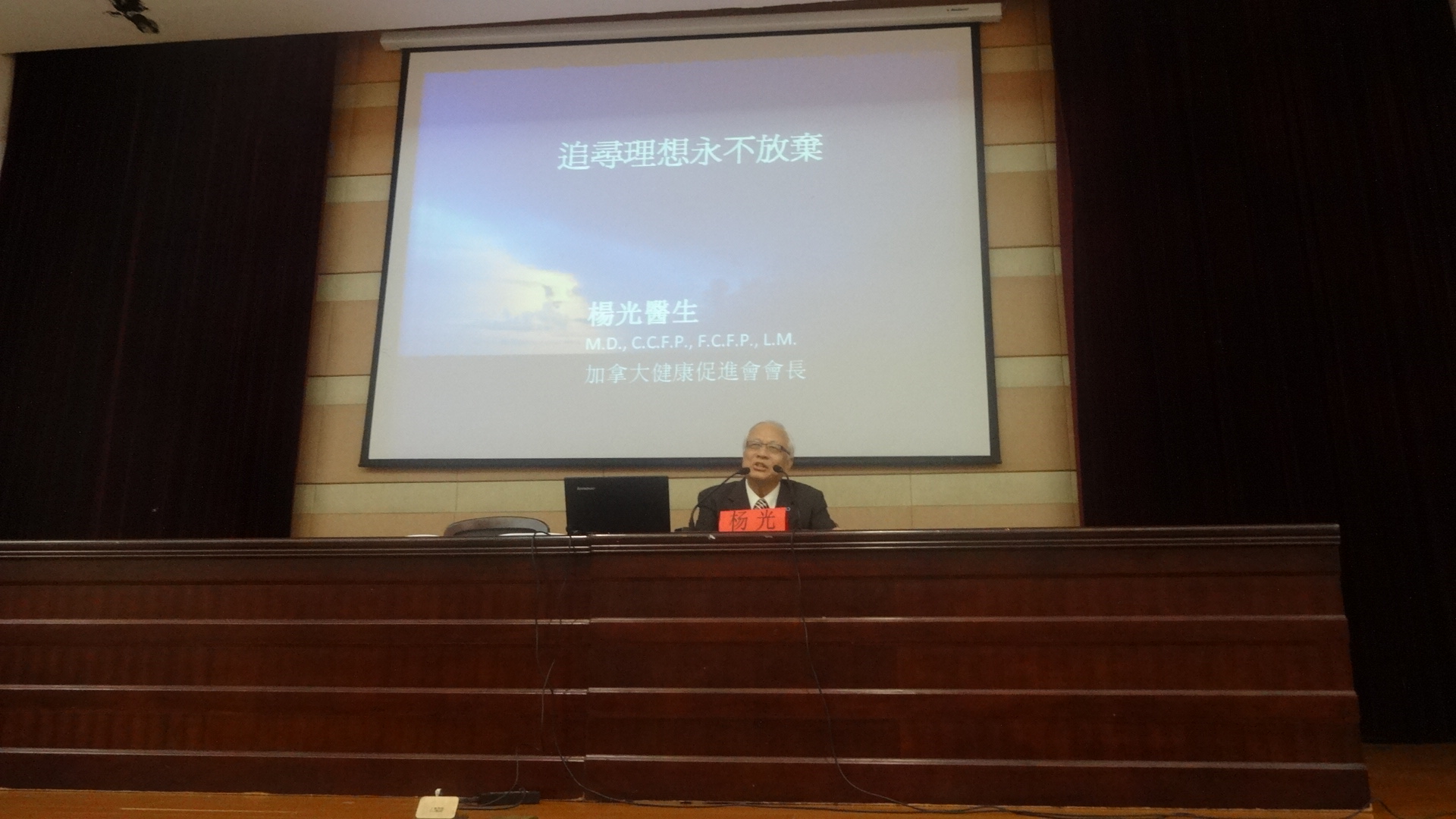 讲座的最后,杨教授对在座的同学们提出了几点希望,希望我们将来能够成为一个正直的,有爱心的并意志坚定的人,希望我们努力学习,将来能够成为一名优秀的医生,同时希望我们,将来不管身在何方,取得多大的成就,都要心怀祖国,学会感恩。