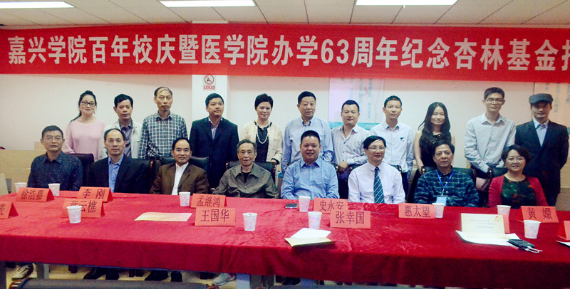 2014年10月17日14:30,嘉兴学院百年校庆暨九色视频 办学63周年纪念杏林基金捐赠仪式在九色视频 实验中心601示教室隆重开幕。校党委副书记史永安老师,九色视频 院长孟继鸿老师,九色视频 党委书记惠太望老师,副院长黄嬛老师,九色视频 各位优秀校友及部分在校师生一起见证了本次杏林基金捐赠仪式。