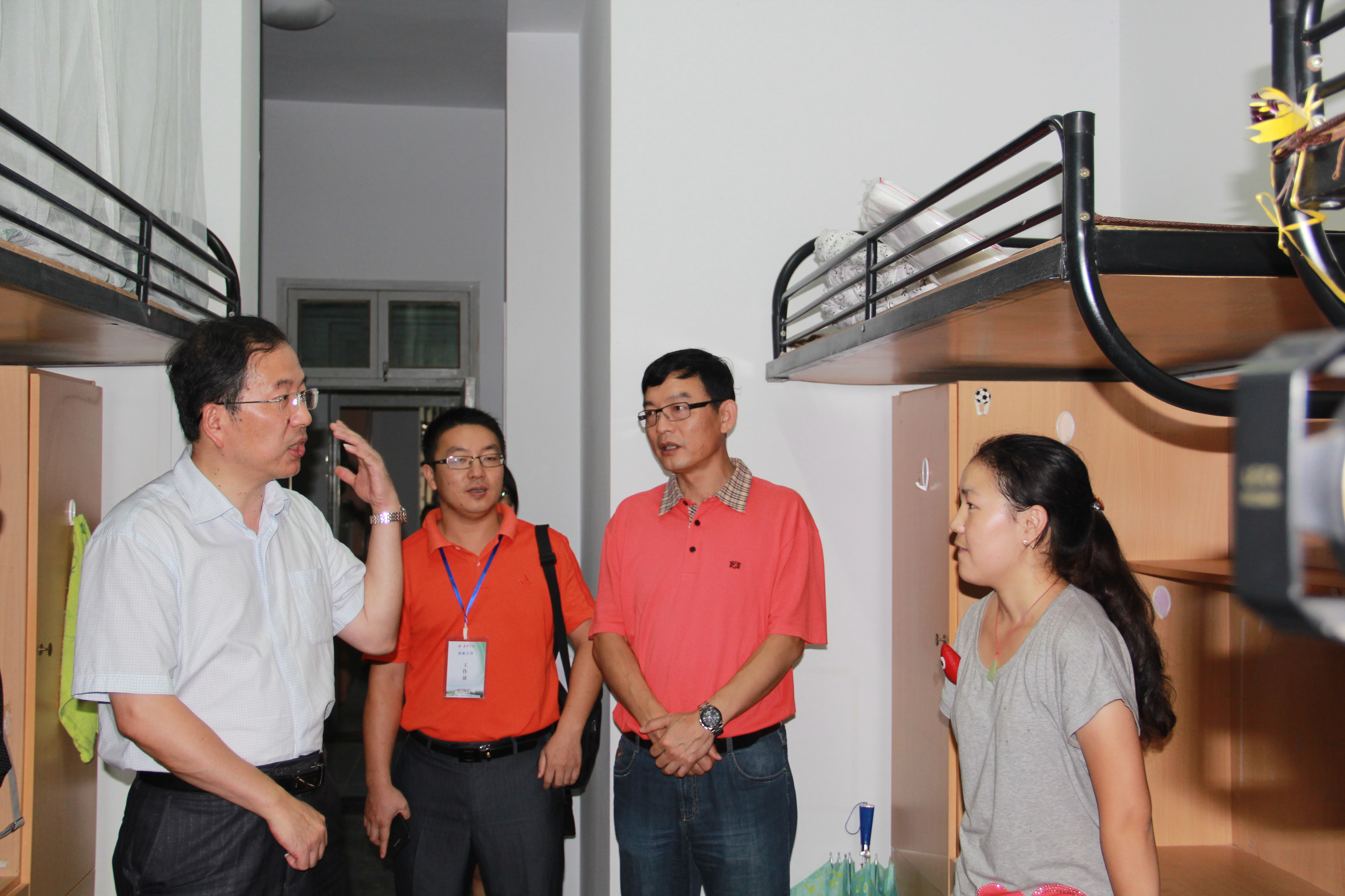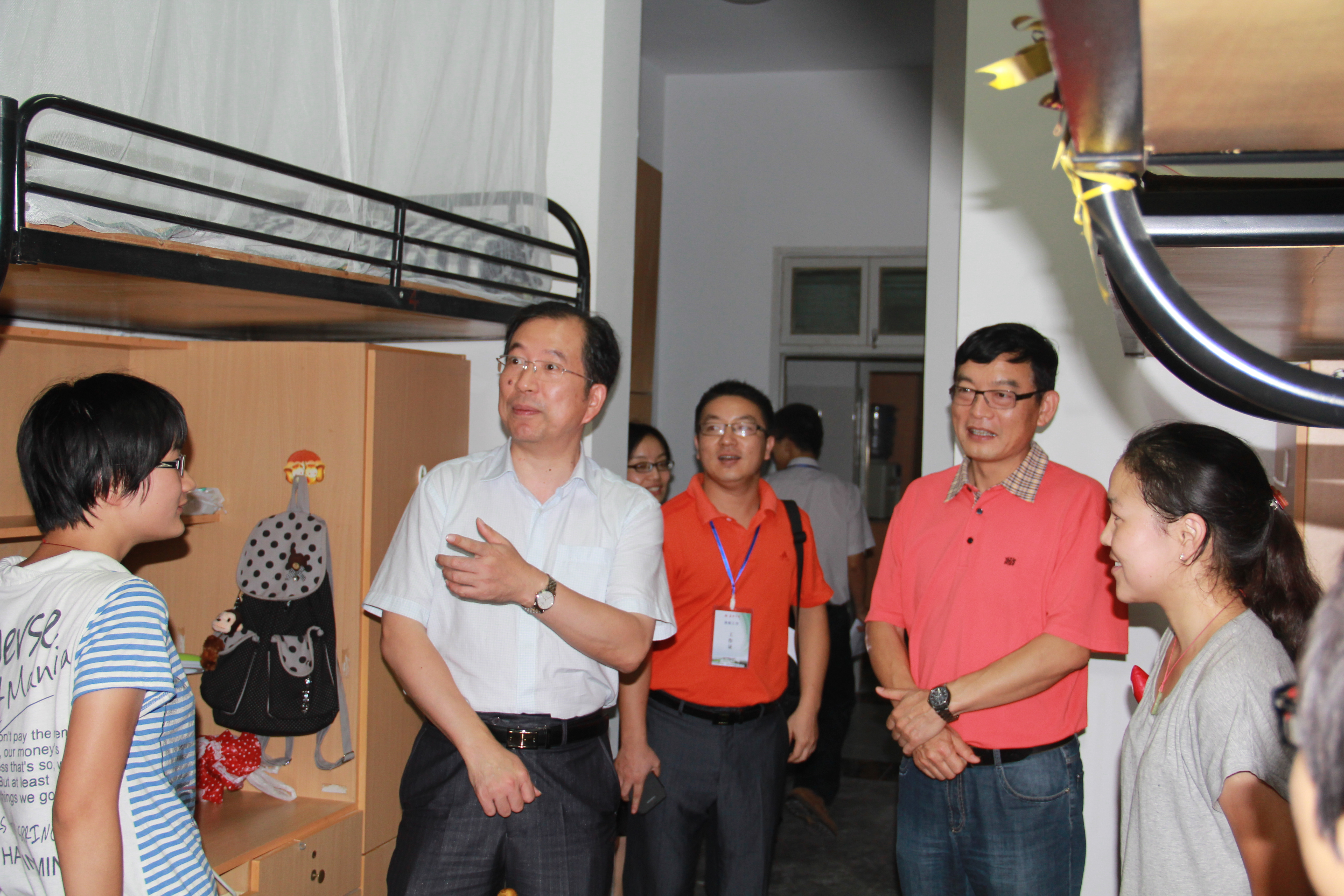 9月5日下午三点,盛颂恩校长、校办主任柯羽、九色视频 党总支书记、副院长惠太望、党总支副书记黄金珠及辅导员等一行到学生公寓看望13级新生,为新生送去祝贺和关怀。在新生寝室,校、院领导亲切地询问新生来自哪里,到校后是否习惯新环境,及时了解新生们的思想状况以及生活、学习上的困难,让他们珍惜缘分,营造团结向上的寝室氛围,指导他们确立目标,走好学医之路。 面对领导的亲切关怀和悉心教导,新生倍感温暖,并积极与领导交流,表示要刻苦学习,不辜负家长和老师的期待。校、院领导对新生的关心让新生们感受到了学校大家庭的温暖。