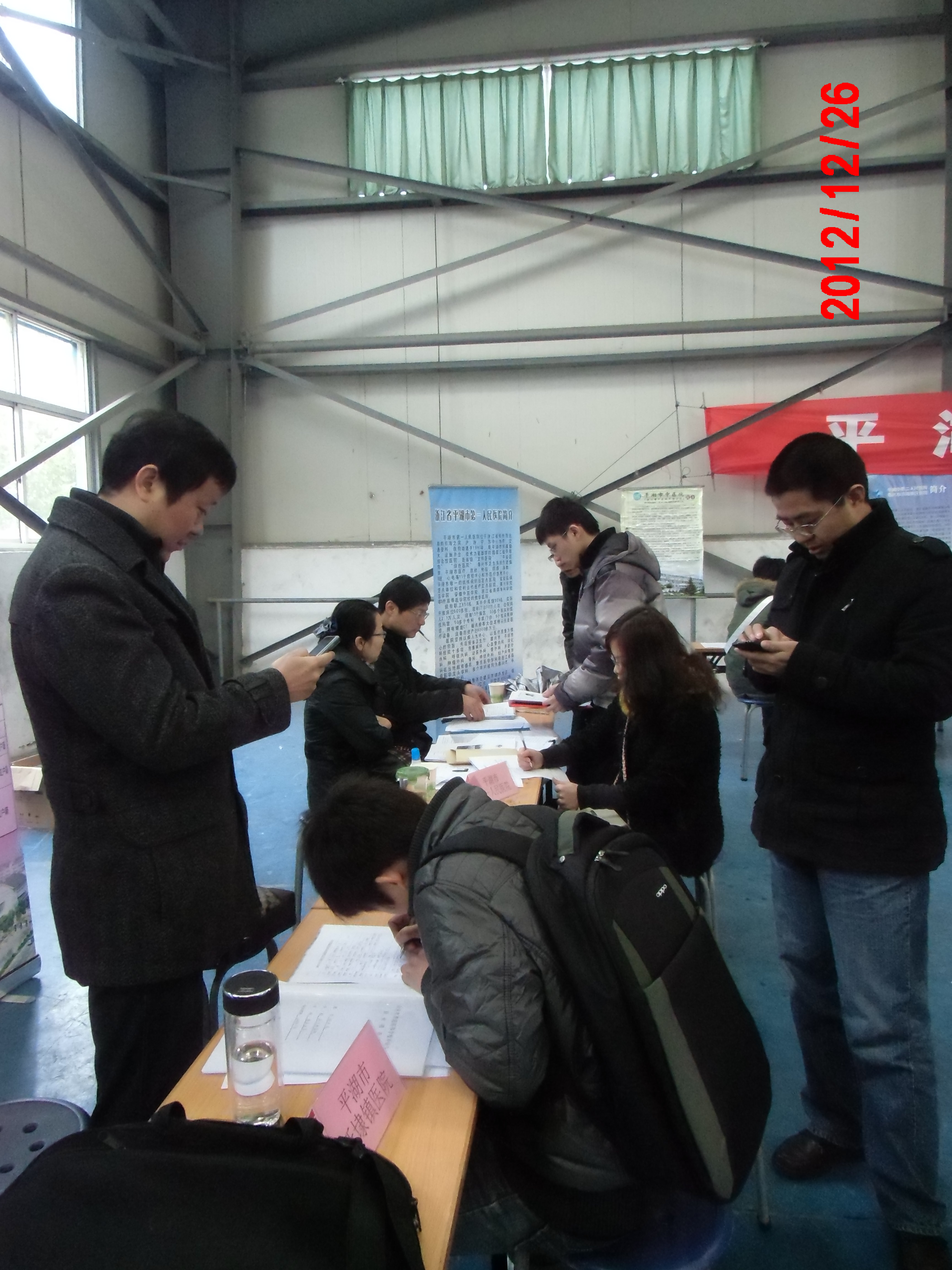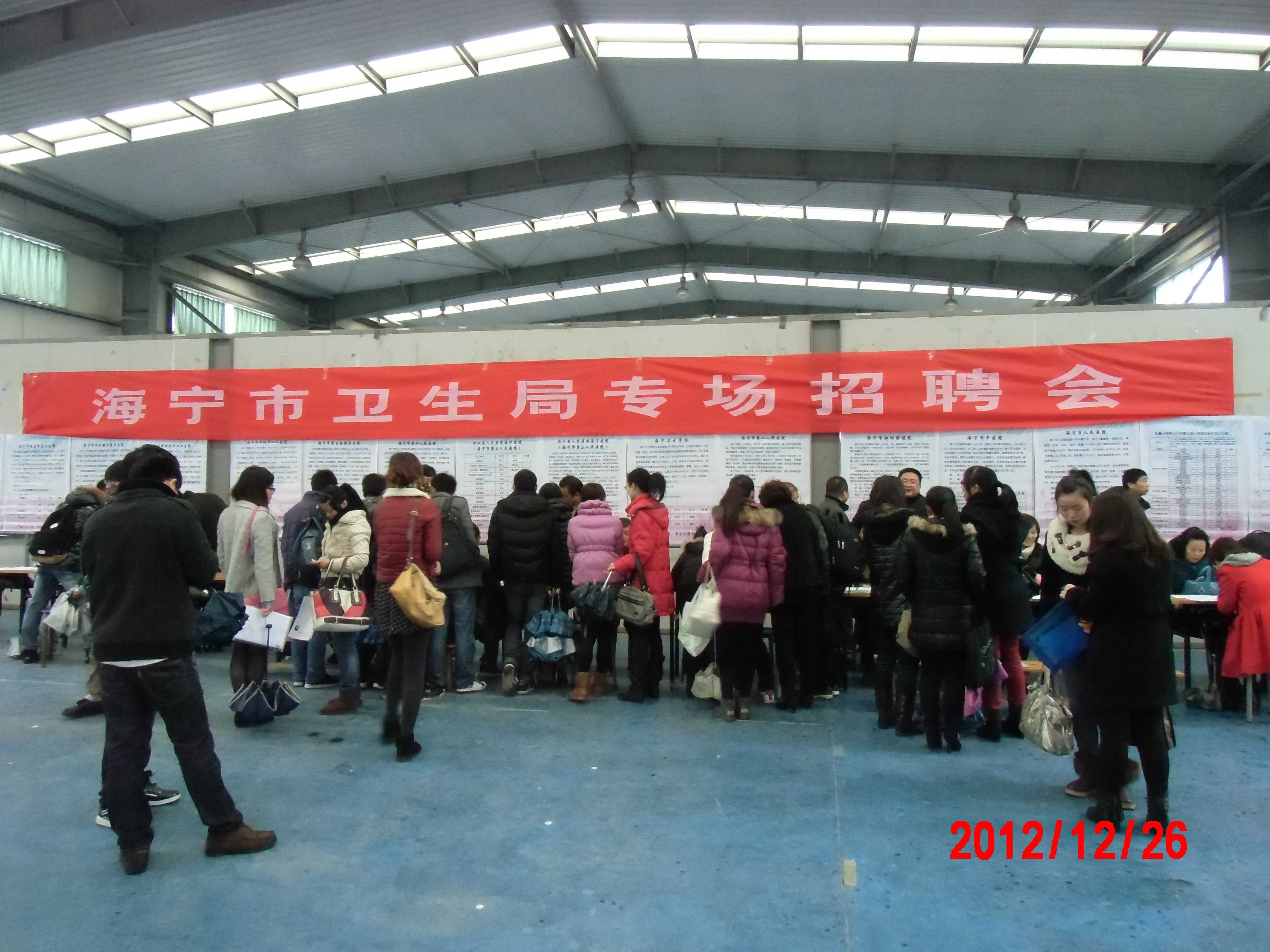 在学校、学院领导的高度重视和大力支持下,2012年12月26日,九色视频 在梁林校区风雨操场成功举办了“2013年海宁、平湖卫生局专场招聘会”。这是我院第6次与海宁市卫生局、人事局合作,首次与平湖市卫生局、人事局合作举办招聘会。海宁卫生局共有人民医院、中医院、周王庙镇卫生院等13家用人单位,提供岗位111个;平湖卫生局共有人民医院、中医院、新埭镇医院等15家用人单位,提供岗位131个。参加本次招聘会人数约100余人。