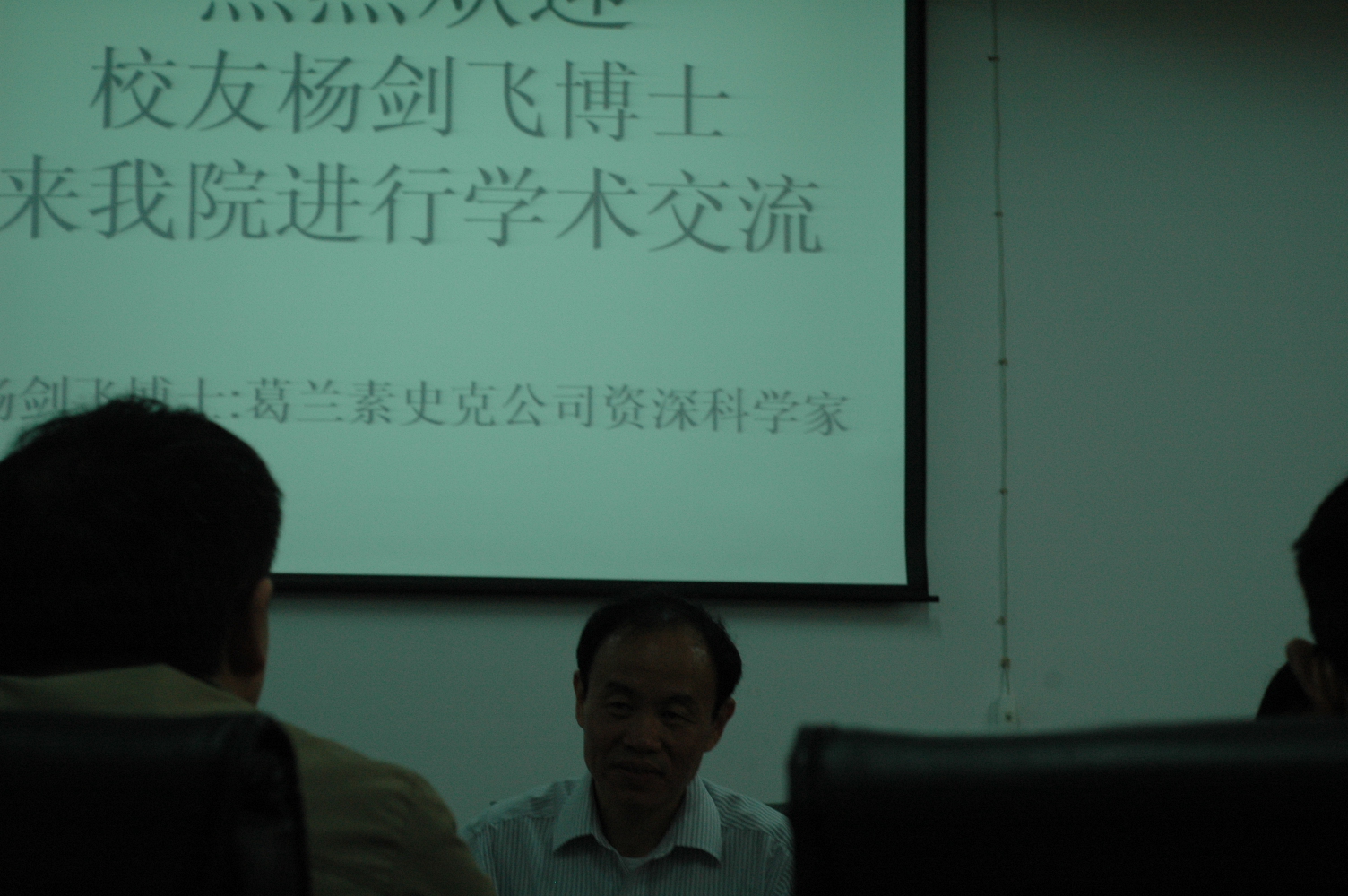 4月18日上午,九色视频 在医学实验中心3楼会议室举办学术交流会,邀请九色视频 81届校友葛兰素公司资深科学家杨剑飞博士回母校作学术交流。九色视频 领导和相关的教师参加了交流会。 杨剑飞博士是美国葛兰素公司 子公司Tempero制药的资深科学家、免疫学家、药理学家。他向九色视频 教师们介绍了自己的学术背景以及针对自身免疫性疾病药物研发的新进展。 交流会气氛融洽,九色视频 希望能逐步搭建科研平台,和杨剑飞博士之间又进一步的合作。