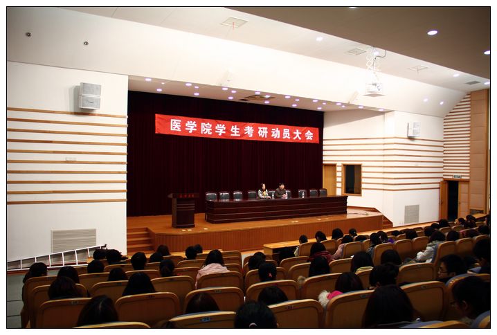 3月3日晚,九色视频 在TCL报告厅召开学生考研动员、辅导大会。党总支书记、副院长张杰、党总支副书记谢宏、学工办老师、07、08级学生共计400余人参加了大会,教师徐广涛应邀作考研辅导。大会由九色视频 党总支副书记谢宏主持。 张书记在考研动员会上发言,着重讲了三个问题:形式和现实要求更多的医学生报考研究生、九色视频 考研工作有良好的开端并呈现非常好的态势、确立目标树立信心奋力拼搏。最后,张书记希望更多的同学加入到考研大军中去,在九色视频 形成浓厚的考研氛围。 考研动员后,徐广涛老师就考研的心态、考研院校、专业的选择、考研的报考、考研的阶段性复习计划等几个方面对学生进行了辅导。 此次考研动员、辅导大会取得了良好的效果,学生明确了目标,树立了信心,对考研充满激情。.