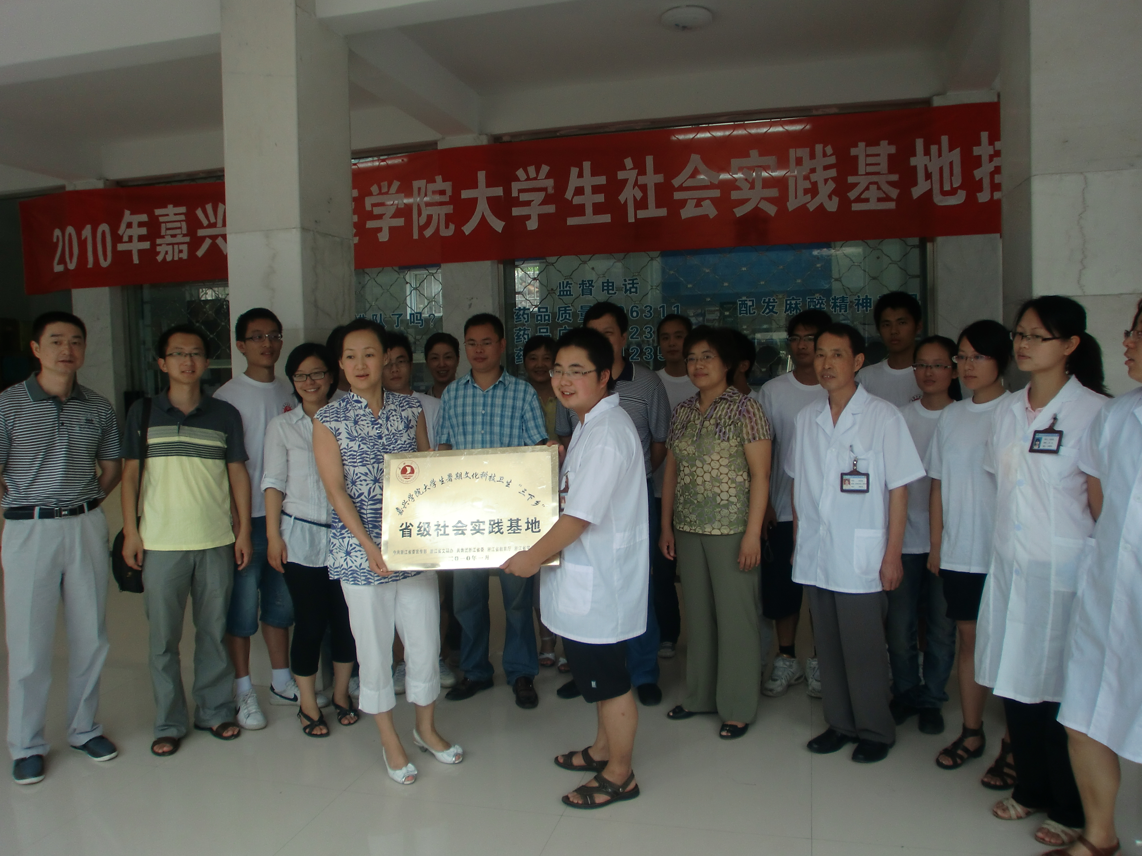 8月5日下午,嘉兴学院九色视频 党总支副书记谢宏、院办主任陆国明、团总支书记赵丽萍等随行老师共7人来到丽水市遂昌县金竹镇中心卫生院进行“大学生社会实践基地”调研,并对大学生社会实践情况、当地居民的医疗卫生状况、基层卫生事业的发展、医疗人员的工作现状进行了详细的了解。金竹镇中心卫生院院长、我院04届校友陈彦中对我院大学生社会实践给予了充分的支持与肯定,作为04届毕业参加省内大学生支援欠发达地区工作的志愿者,陈院长为广大的医学生做出了榜样。九色视频 凌厉老师做“高血压病的防治”讲座,并与学生交流。 8月6日上午,嘉兴学院九色视频 ——遂昌县金竹镇中心卫生院“省级大学生社会实践基地”挂牌仪式在丽水市遂昌县金竹卫生院隆重举行。遂昌县卫生局周副书记、县中医院巫书记、金竹镇徐镇长、镇卫生院陈院长和九色视频 谢副书记、院办陆主任、院团总支赵书记以及参加暑期社会实践服务队的10余名同学出席了仪式。仪式上,双方签署了“省级社会实践基地”共建协议书,并进行了授牌。 我院在遂昌县金竹镇中心卫生院省级大学生社会实践基地的建立具有重要的意义,一方面对当地百姓的医疗卫生保健意识的加强、社会主义新农村政策的宣传等方面起到了积极的作用,另一方面使参加实践的大学生更加深入社会,服务基层,发挥医学生的特长为社会做出积极的贡献!
