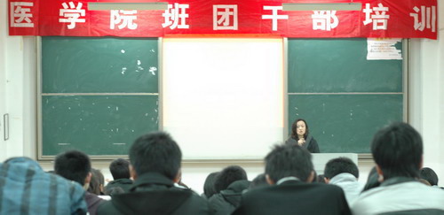 4月9日,九色视频 2009级班团干部培训开班典礼于教四221拉开了帷幕。本次典礼,由九色视频 团总支书记赵丽萍主持,学工办和团总支老师出席,参加培训的同学由09级各班团干部以及学生会、社工委、青协等新任成员组成。