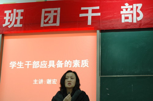 在讲座中,谢老师强调班团干部要保持旺盛的工作热情,时刻清醒,并提出作为班团干部应具备“正确利用和控制自我情感的能力”、“组织与策划的行动能力”、“敢于质疑的精神”、“良好的心理素质”等,为班团干部指明了今后的具体发展方向,令在座的同学们深受鼓舞。最后,赵老师对典礼做总结,并对班团干部学习的课程安排做出具体讲解。
