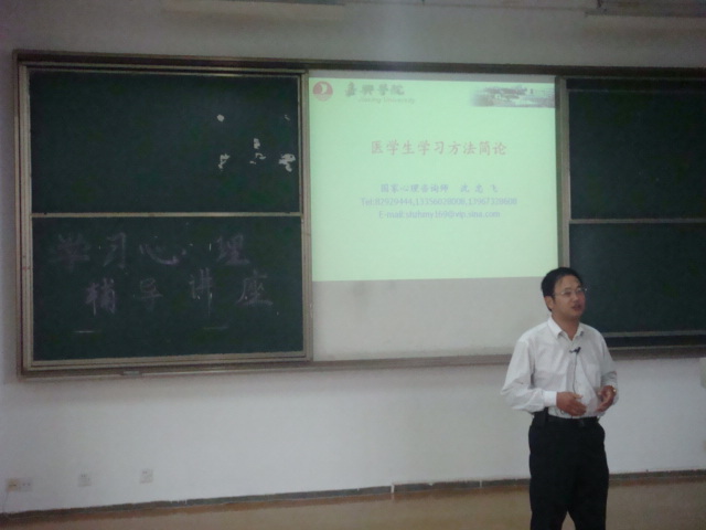 2009年11月1日上午8点半,九色视频 学工办邀请到“解剖学教研室”的沈忠飞老师(国家二级心理咨询师),为2009级护理专业共约100人做了一场有关“学习心理”的辅导讲座。