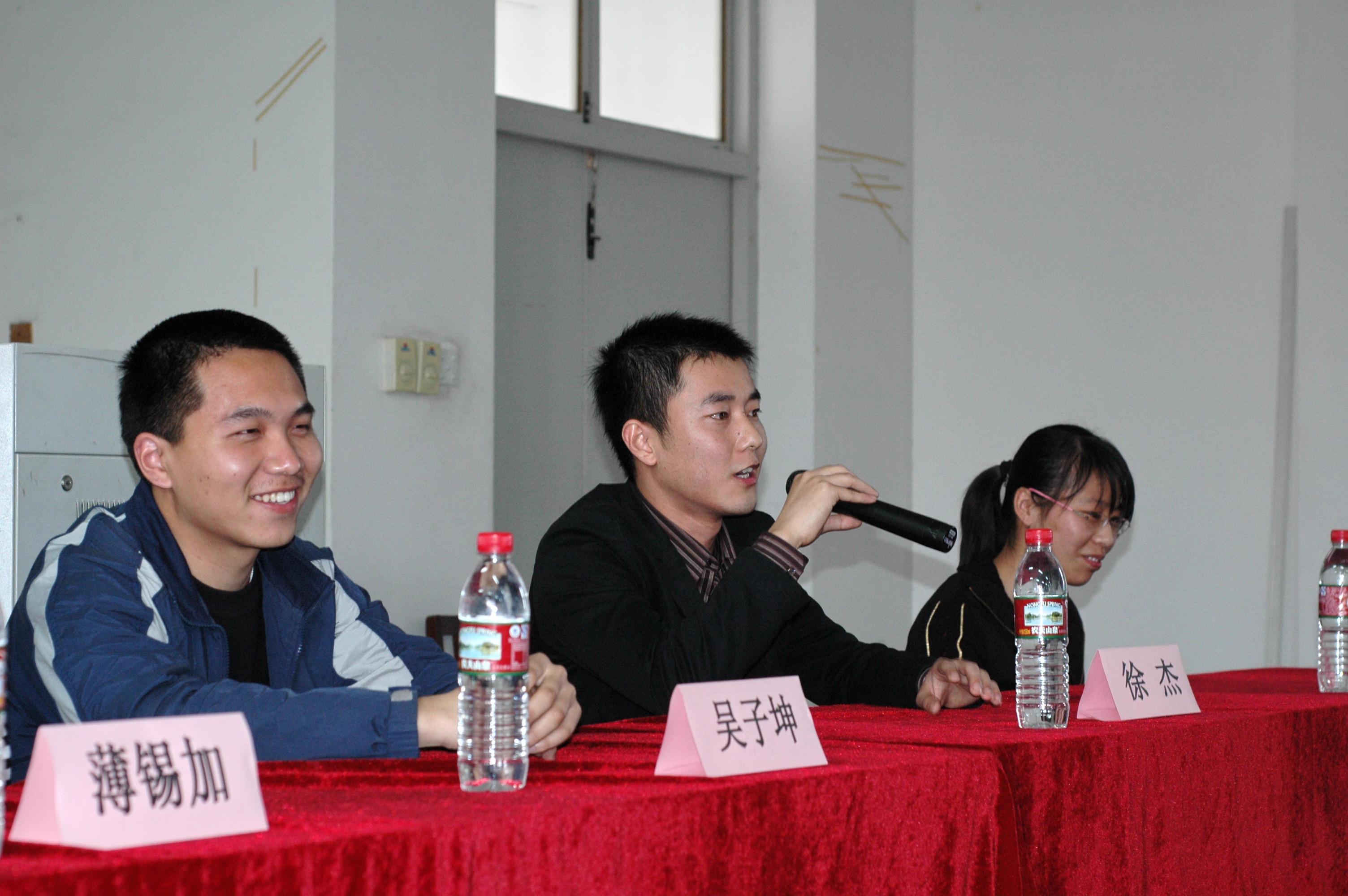 在交流会上,各位校友简单的自我介绍之后,便由05级的同学向他们发起提问,大家都踊跃发言,“请问王晓凑学长,你是如何处理考研、找工作和实习这三者的关系的?”,“请问吴子坤学长,你在考公务员的过程中是如何准备的?”,“请问一下我们资格最老的薄锡加学长,能与我们分享一下你在四川的经历吗?”大家频频发问,将交流会的气氛掀向了高潮。