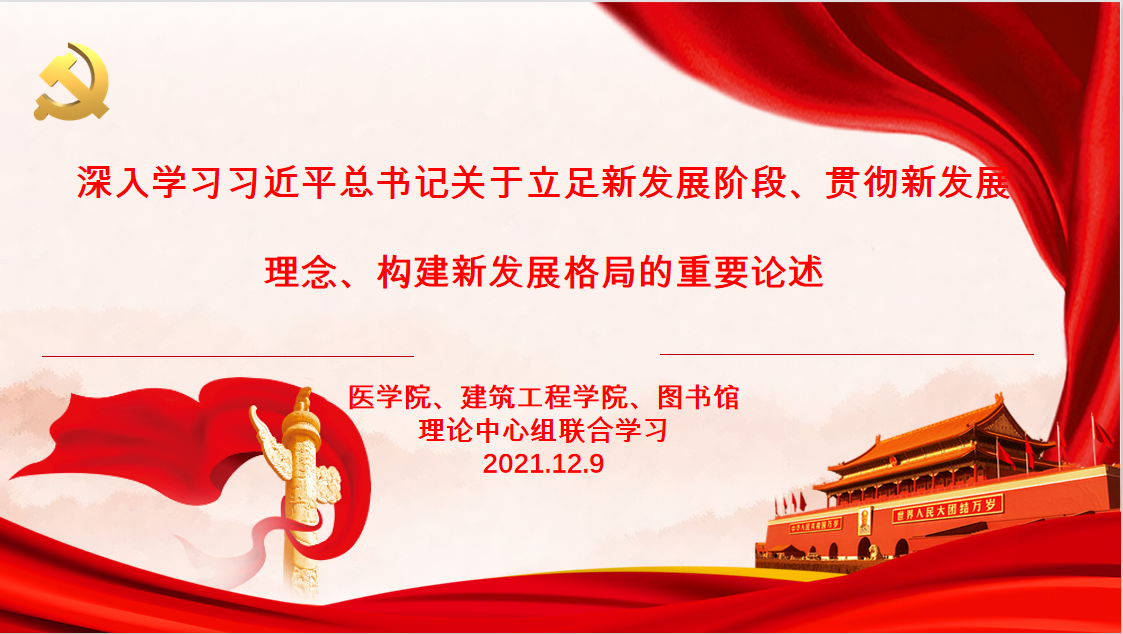 党委、建筑工程学院党委、图书馆直属党支部在仁心楼330会议室召开理论学习中心组联学,专题学习研讨习近平总书记关于立足新发展阶段、贯彻新发展理念、构建新发展格局的重要论述。