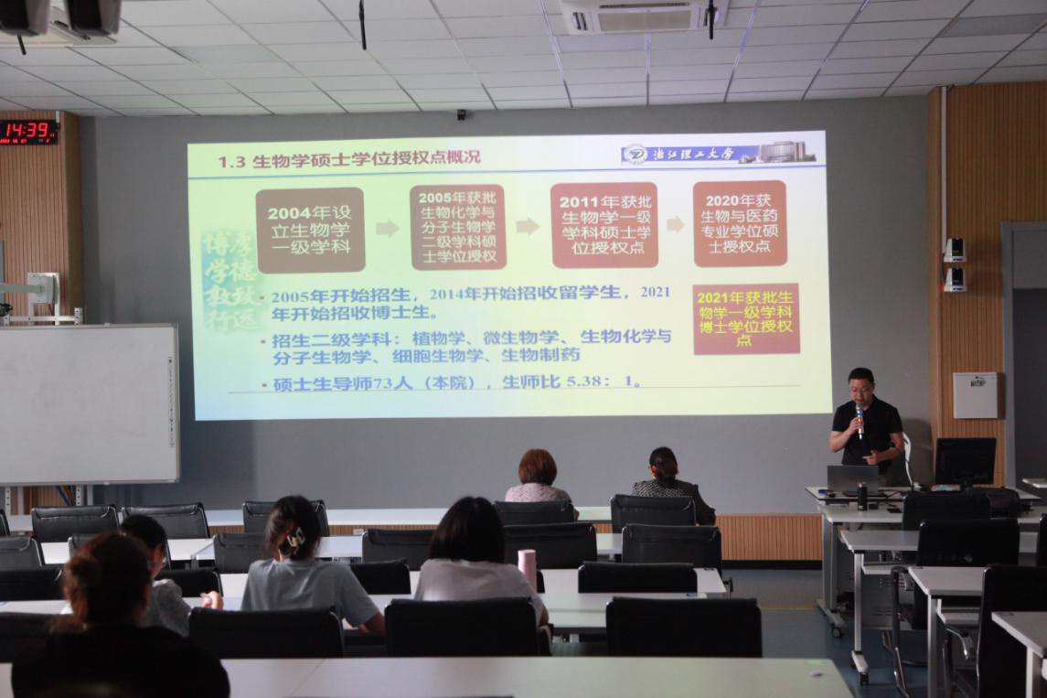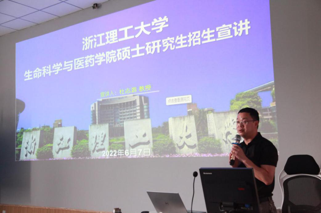 2022年6月7日下午,浙江理工大学生命科学与医药学院的杜志游教授来到医学院,为我院学子做研究生招生宣讲。九色视频 副院长潘巍巍、药学系主任黄越燕等教师参加宣讲活动。杜志游教授介绍了浙江理工大学及生命科学与医药学院的概况、学院人才队伍、学科布局、专业方向以及硕士招生相关信息。此外,杜教授还介绍了生命科学相关知识,让学生了解到国内外当前研究热点及方向,开阔了学生视野,体验了多元文化、锻炼了独立思考能力,并与学生进行提问式互动,加深对广大同学对知识的巩固理解。
