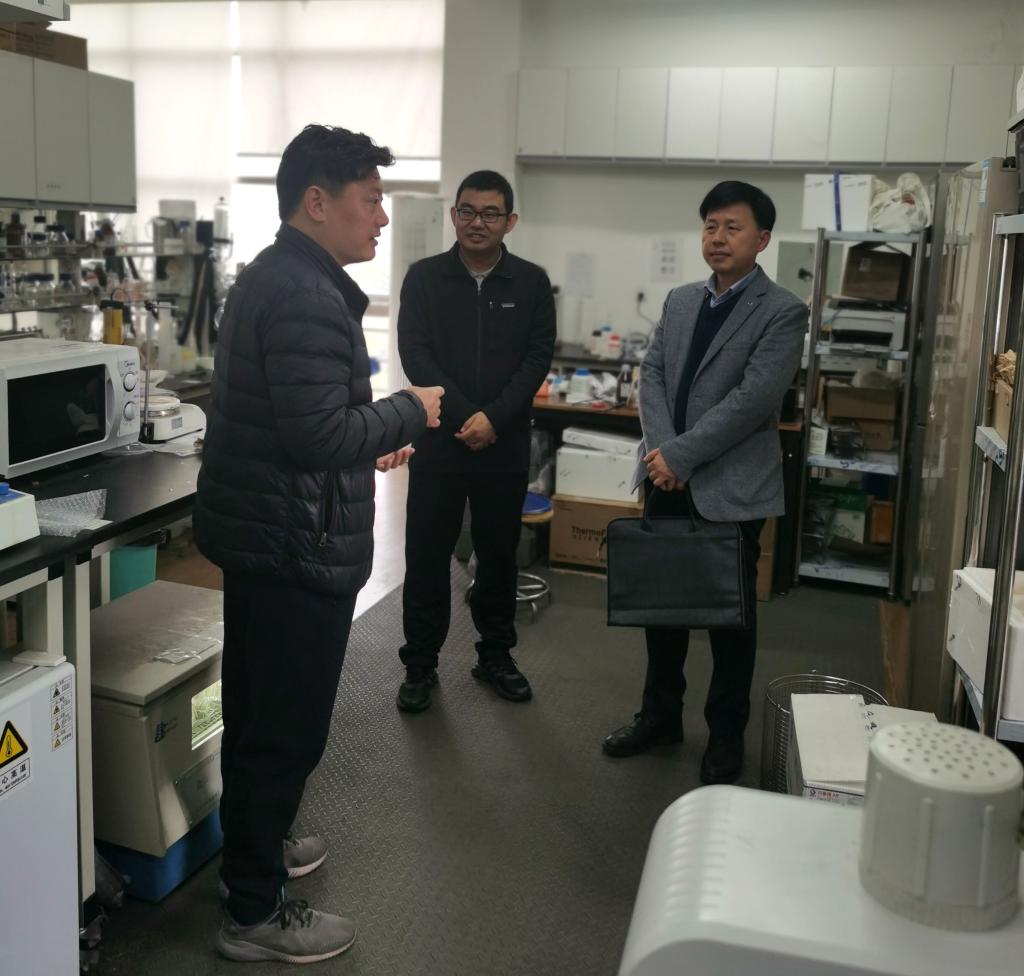 座谈会后,夏鹏国陪同何治一行参观了生命科学与医药学院团队实验室及危化品储存室。此次交流对进一步推动了我院与浙江理工大学生命科学与医药学院在联合培养研究生、科学研究等方面的合作。