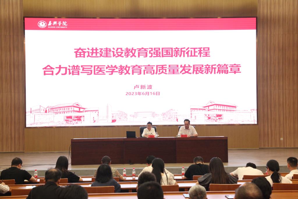 ;二是要坚决落实立德树人根本任务,着力培养医学生敬佑生命、救死扶伤、甘于奉献、大爱无疆的精神;三是要进一步加强人才队伍建设。充分激发人才创新创造活力,推动人人皆可成才、人人尽展其才;四是要进一步提升学科科研创新力,扎实推进新医科建设,努力产出一批高质量成果;五是要进一步提升社会服务贡献力,在服务嘉兴高质量发展、服务健康嘉兴建设中体现新担当、展现新作为。