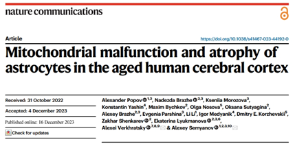 近日,我院Alexey Semyanov院士领衔的神经生物学团队在国际著名期刊Nature Communications在线发表了题为“Mitochondrial malfunction and atrophy of astrocytes in the aged human cerebral cortex”的研究论文,嘉兴学院为本论文的第一署名单位。