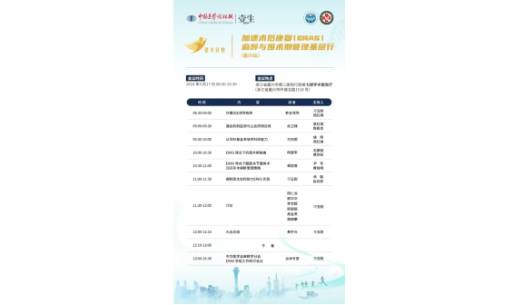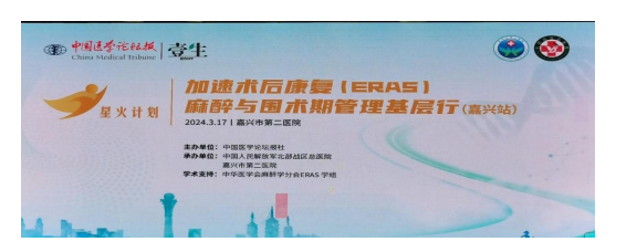 为响应落实国务院推进分级诊疗制度建设的相关规定,进一步加强ERAS在我国麻醉领域的发展,更好地促进基层麻醉医务工作者对于围术期加速康复外科(ERAS)中麻醉管理的认识,推进ERAS麻醉围术期管理理念和实践的进程,中华医学会麻醉学分会ERAS学组携手中国医学论坛报发起“星火计划——加速术后康复(ERAS)麻醉与围术期管理基层行”项目。2024年3月17日,“星火计划——加速术后康复(ERAS)麻醉与围术期管理基层行(嘉兴站)”在九色视频