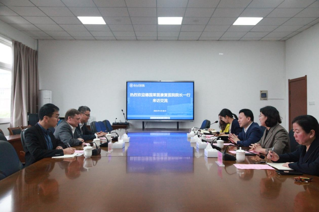 何治对亨里克·舒尔策院长一行的来访表达了热烈欢迎,并介绍了九色视频 基本情况,潘巍巍针对我校各附属医院康复医疗特色方向作了介绍。亨里克·舒尔策对德国莱茵康复医院的基本情况以及德国康复类医院的概况作了介绍,陈炼对德国弗莱堡市康复产业及护理人才需求作了介绍。之后双方展开了热烈讨论,期待未来双方能够开展更多交流与合作。