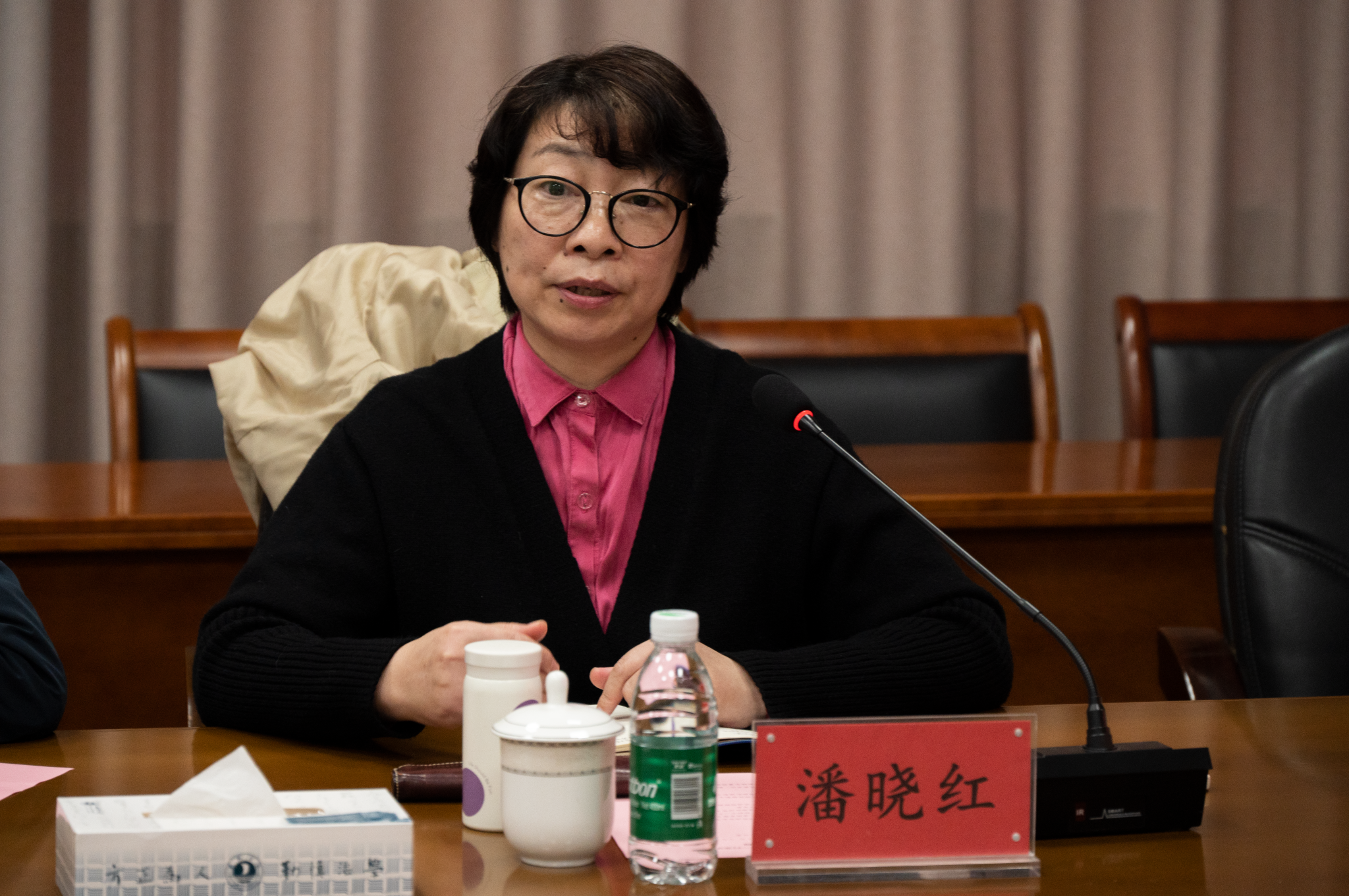 陈云飞对潘晓红一行的到来表示欢迎。他指出,面对新形势下的任务和挑战,高校有责任和义务通过教育和干预措施,保护和促进学生群体的健康。王敏介绍了校医院的主要职责和发展现状。苗会苹汇报了学校公共卫生工作及全国大学生抗艾防艾宣传教育活动项目开展情况。