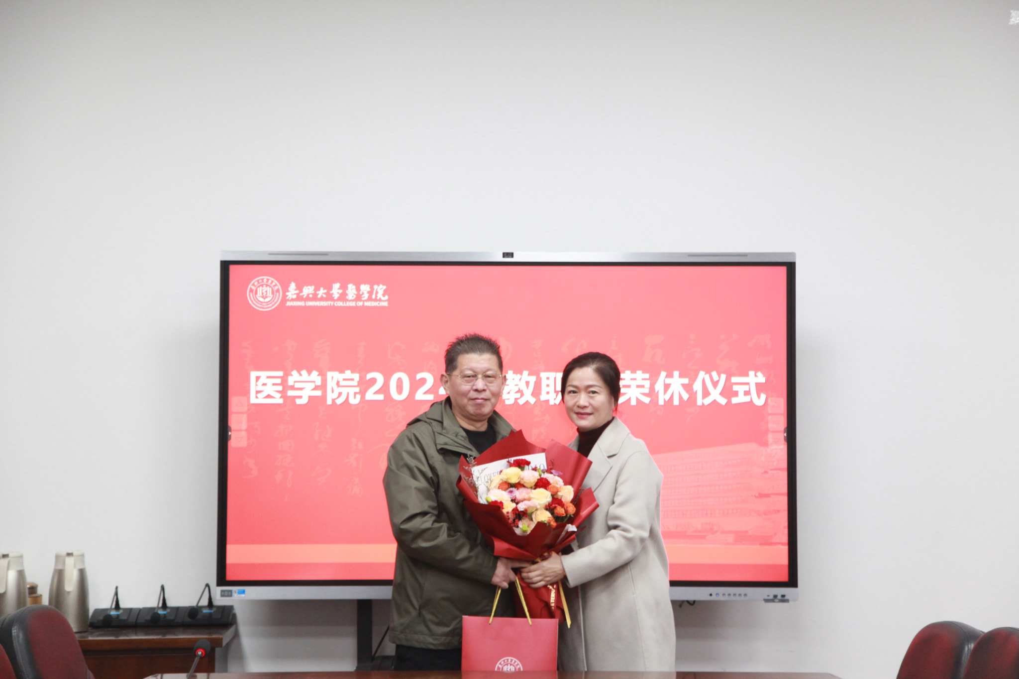 党委书记陈云飞、院长何治代表全体师生员工,向告别工作岗位、开启人生新篇章的退休教师表达崇高敬意和衷心感谢。