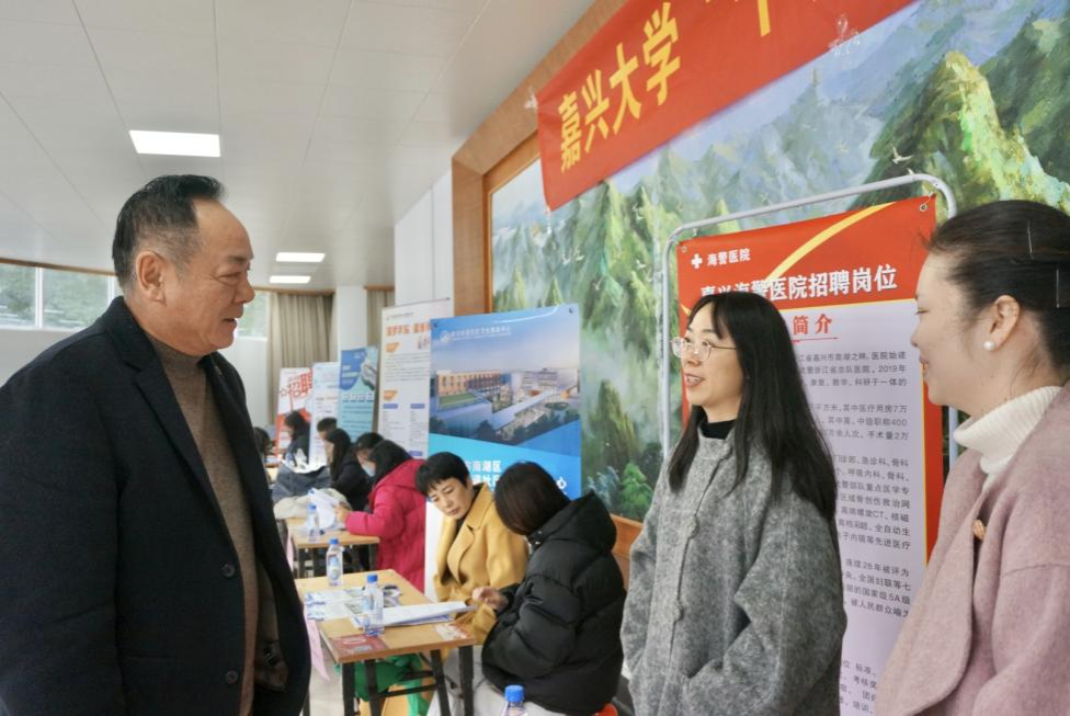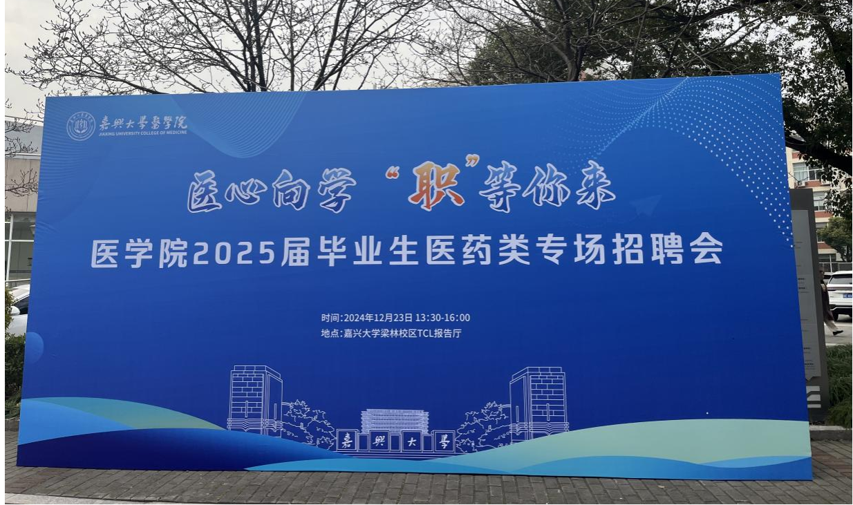 在TCL报告厅举办以“医心向学,‘职’等你来”为主题的2025届毕业生医药类专场招聘会。本次招聘会邀请到中国人民武装警察部队海警总队医院、嘉兴市王店人民医院、嘉兴市南湖区建设街道社区卫生服务中心三家医疗卫生单位,以及金赛药业、华东医药股份有限公司嘉兴分公司、麒盛科技股份有限公司等近20家医药类企业,共提供各类岗位百余个,学院2025届毕业生参与此次招聘会。