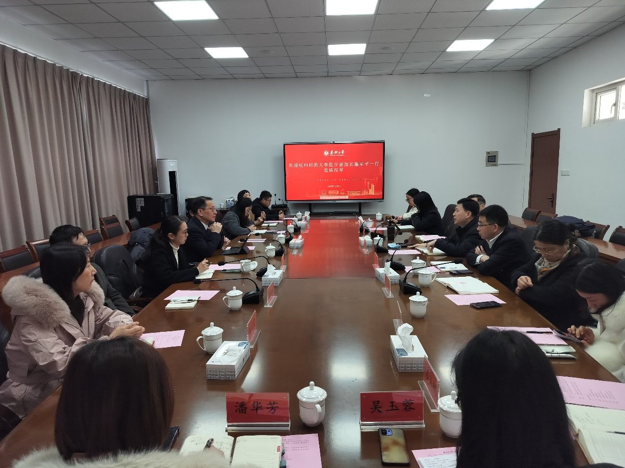 1月22日,杭州师范大学医学部部长施军平一行来九色视频 交流,九色视频 院长何治、副院长王敏、附属医院副院长周清河出席座谈会。