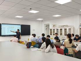 近期发布的《限额推荐类科技与教学项目评审办法》进行政策解读,详细说明项目申报流程、排序原则及其后续影响。她还介绍了科研平台管理制度中有关平台准入、大型仪器预约使用流程及收费标准等内容,鼓励教师积极利用学院科研资源。郭燕君主任最后就人才人事系列文件的修订征集意见工作进行布置,呼吁教师们积极建言献策,并明确了意见反馈的时间与渠道。