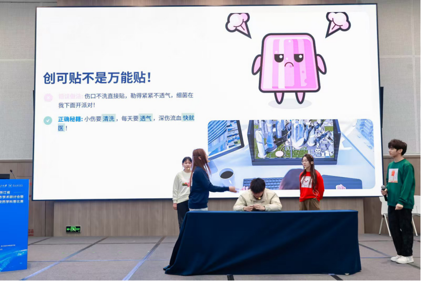 团队巧妙地将文化创意与科学传播相结合。荣获一等奖的情景剧作品《头孢配酒》,创新性地借鉴经典影视叙事风格,以生动情节和鲜明人物,将严谨的用药安全知识转化为引人入胜的故事。这种融合叙事美育与责任教育的科普形式,让科学知识在文化情境中深入人心,充分彰显了文化德育的感染力与实效性。另一部以拟人化手法阐释合理用药的情景剧《剂动人心》,也凭借其贴近生活、妙趣横生的演绎荣获优胜奖。