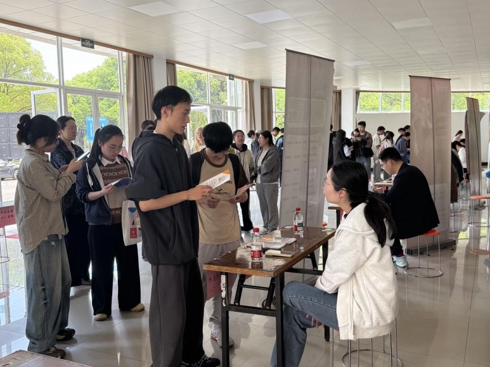 招聘会现场人头攒动、气氛热烈。用人单位展位有序排布,岗位信息清晰醒目。毕业生们手持精心打磨的简历,积极穿梭于各招聘展台之间,主动与用人单位深入交流,围绕岗位职责、职业发展路径、薪酬福利等核心问题细致咨询,展现出扎实的专业素养、清晰的职业规划和昂扬的精神风貌。值得一提的是,不少低年级同学也专程前来“探营”,提前了解行业动态与用人标准,为未来学业与职业发展早做准备。